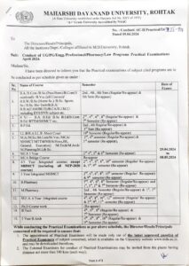 April 2024 Practical Examination Schedule