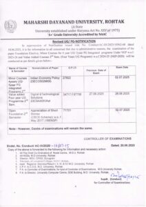 Notification- regarding modification in date sheets (Engineering Courses & PG Course)